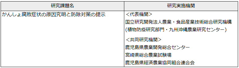 かんしょの腐敗症状の原因究明と防除対策の提示