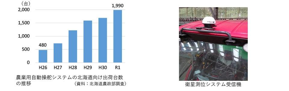 北海道では農業用自動操舵システムの出荷が年々増加(平成26年度:480台→令和元年度1,990台)しており、農業用ロボット技術の普及が進んでいます。