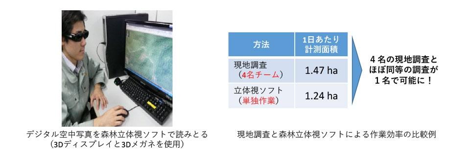 ➔ 森林立体視ソフトと組み合わせることで、現地調査業務を約4倍 効率化