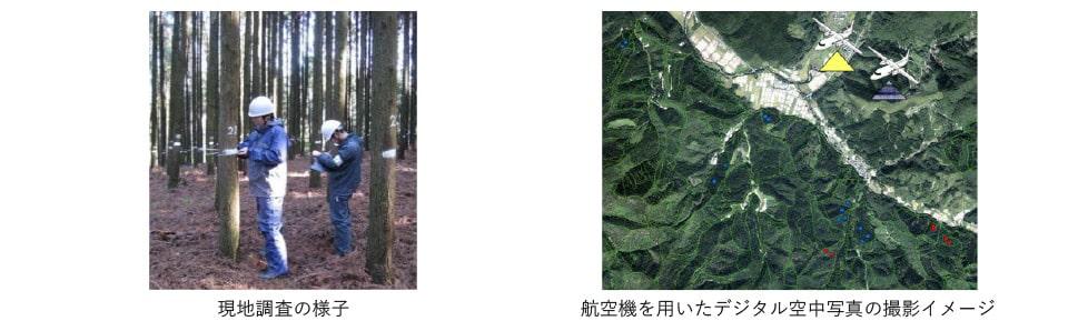 そこで、現地調査を行わずに、効率よく木材の収穫量を見積もるため、全国の多くの森林をカバーしており、比較的安価に入手できるデジタル空中写真を用いて林分材積(幹の合計体積)を推定する方法の開発に取り組みました。