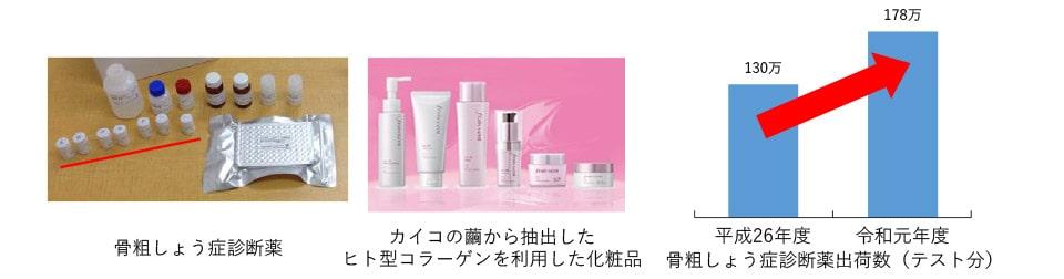 このタンパク質を用いた骨粗しょう症診断キットはニットーボーメディカルによって平成24年に市販化され、順調に普及し、令和元年度には178万テスト分出荷されるまでになりました。(平成27年度民間部門農林水産研究開発功績者表彰において農林水産大臣賞を受賞)