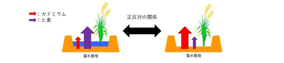 イネの栽培では、水を張る(湛水)とヒ素が、逆に水を切らす(落水)とカドミウムが吸収されやすくなります。これらの正反対の性質を持つ有害元素を同時に低減する技術の開発が求められていました。