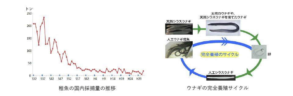 しかし、シラスウナギの採捕量が年々減少傾向にあるため、人工シラスウナギの供給を求める声が高まりました。平成22年には、人工シラスウナギを親に育てて次世代を誕生させるウナギの完全養殖に成功しましたが、人工シラスウナギの生産は非常に不安定で、少量ずつ手間をかけて育てる必要がありました。