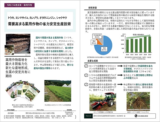 - 需要高まる薬用作物の省力安定生産技術