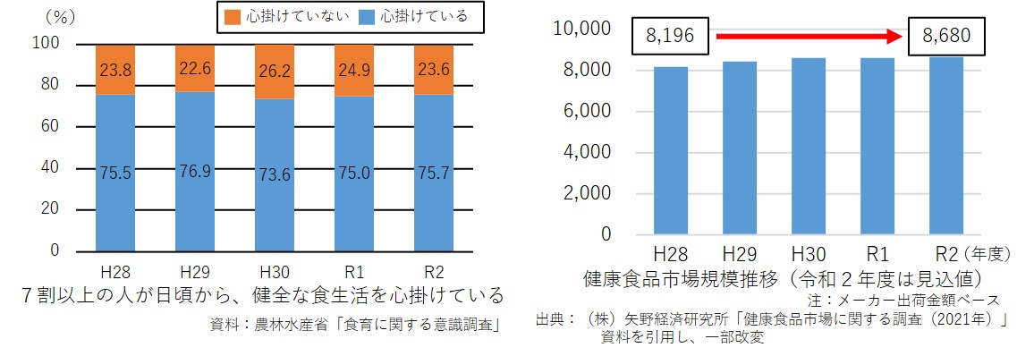 超高齢社会の現在において、食を介した健康維持増進への関心は高く、また、2015年の機能性表示食品制度の開始以来、機能性表示による地域特産物の高付加価値化が期待されています。