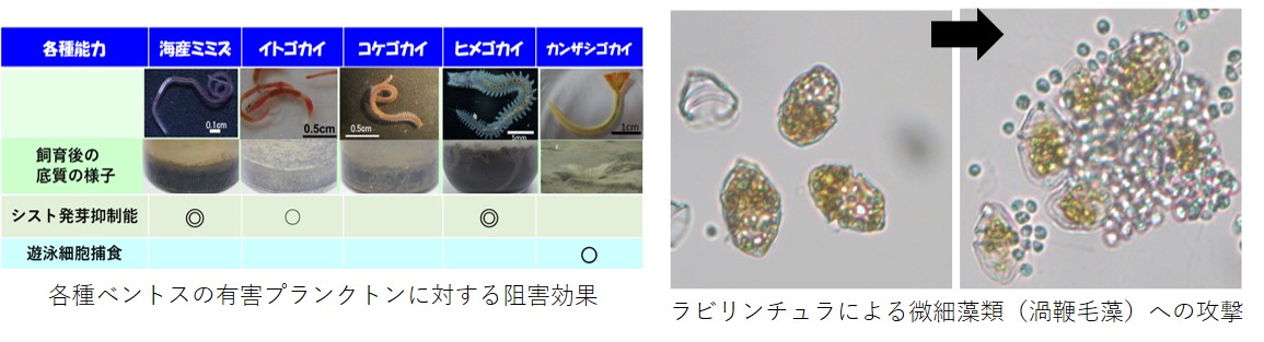 ➔ 海域毎の赤潮発生の危険性を推し量るデータを提供 - 有害プランクトン等を抑制する寄生生物(ツボカビ類)やベントスを発見、解明