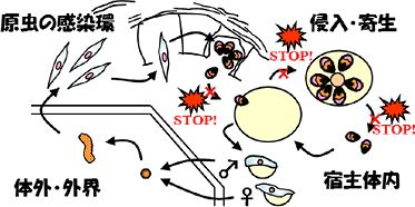 原虫独特の感染環を遮断する新しい抗原虫薬の技術開発。