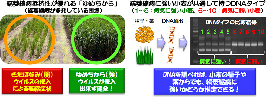 コムギ縞萎縮病抵抗性の抵抗性遺伝子座を明らかにし、「ゆめちから」における抵抗性を飛躍的に改良することにより、今後の我が国の小麦の品種改良に大きく貢献した。