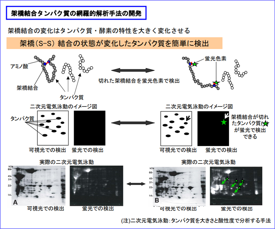 タンパク質の架橋結合(ジスルフィド結合)の形成・切断は、タンパク質・酵素の特性を大きく変化させることから、生物において重要な役割を果たしていることが明らかになってきている。