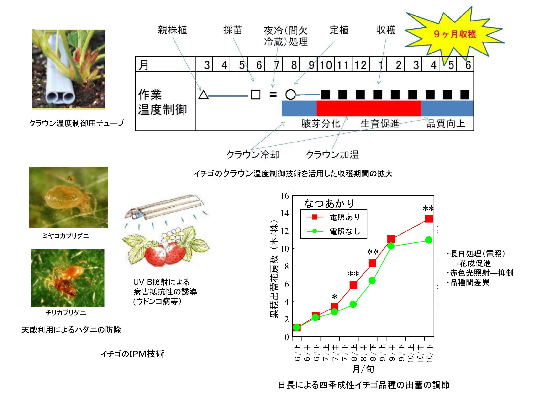 - 1-(2) イチゴの局所温度管理による花房形成と収量・品質の安定化技術(宮城農園研/九沖農研/岡山大学)