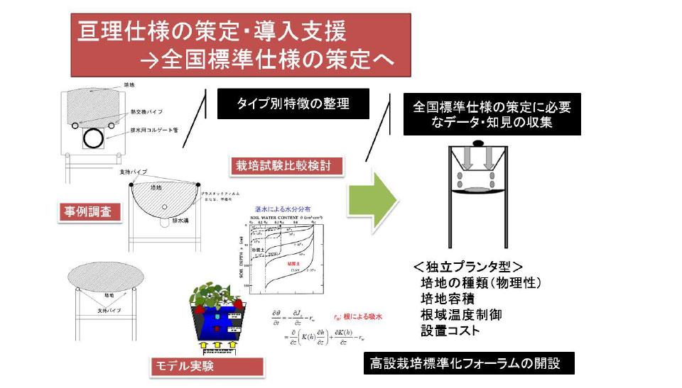 1.亘理仕様策定と導入支援および高設栽培の実態調査(野菜茶業研究所)