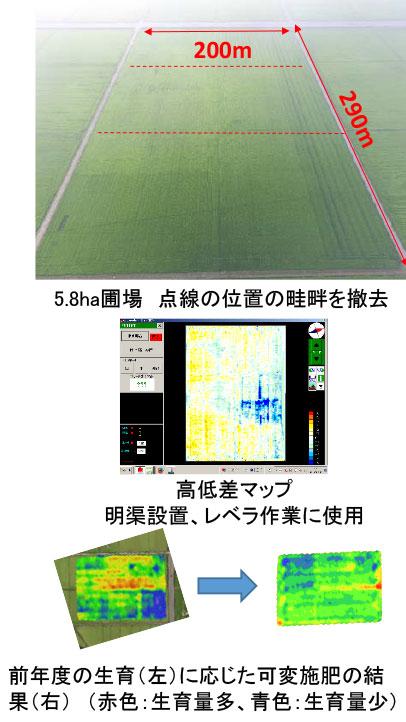 - 圃場内で土壌の性質が異なる場合は、地力の差に応じた可変施肥を行うことにより、生育の均一化を図ることが可能となります。