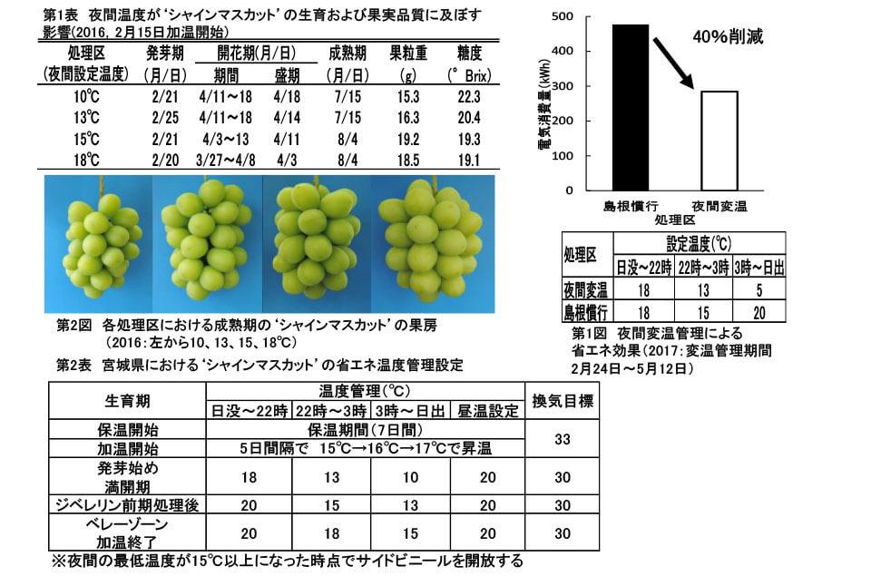- 宮城県の加温栽培シャインマスカットにおける省エネ温度管理法