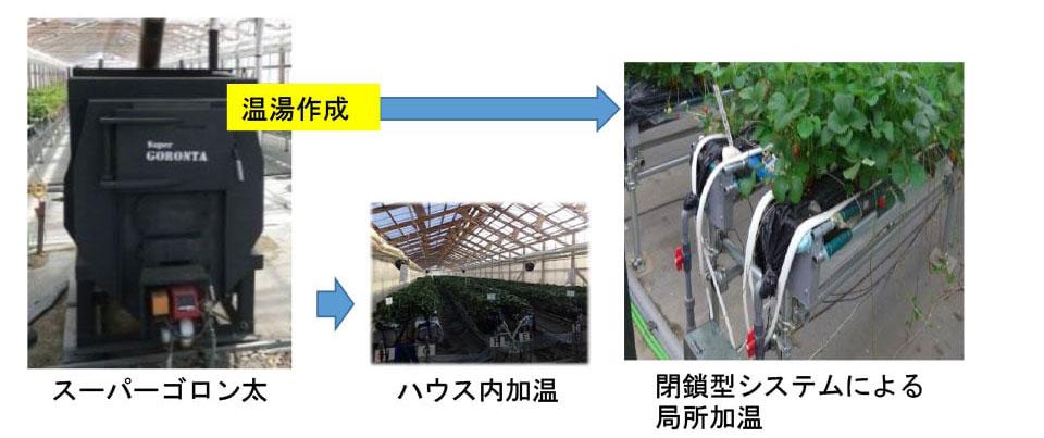灯油暖房機と併用した場合、灯油使用量が97%削減(木質暖房機+灯油暖房機0.64ℓ/日←灯油暖房機のみ10.5ℓ/日) - (2)冬期収量が15%向上(局所加温6.5t/10a←無加温5.6t/10a)