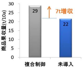 - (1)商品果収量が32%向上(複合制御29t/10a←未導入22t/10a)