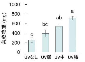 UV照射によりトマト苗の乾物重が回復(感受性品種)。