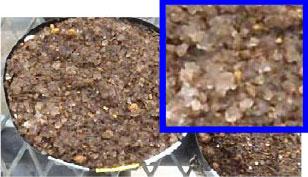 8g/Lの濃度で用土に混和。白く半透明に見えるものが吸水した高吸水性ポリマー。