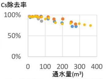 また、何らかの原因で作物影響が生じる濃度になった場合、1本で300 – 400 m3の水中の放射性セシウムを80-90%浄化できる浄化用カートリッジも開発しました。