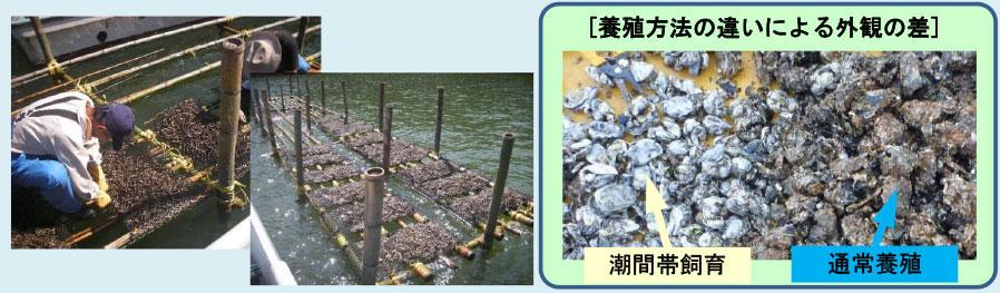 潮間帯(潮の干満により露出と水没を繰り返す場所)を利用することで、特徴ある外観と味を持つカキ(松島湾浦戸諸島.あたまっこカキ)を安定的に生産する技術を確立しました。