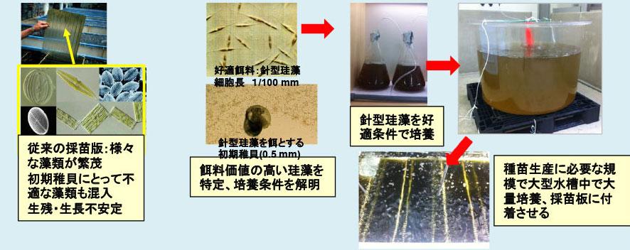 - 岩手県内漁協のアワビ種苗生産施設において、針型珪藻の培養技術を確立
