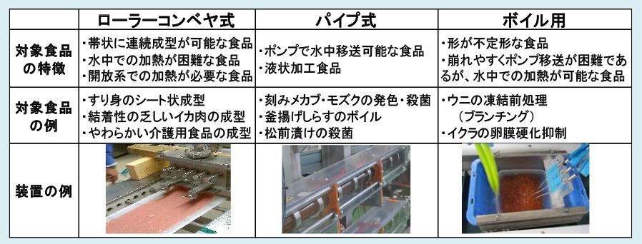 通電加熱は、食品自体に電気を流して加熱する方法で、対象物の形状や特性によって、さまざまな形の装置が利用可能