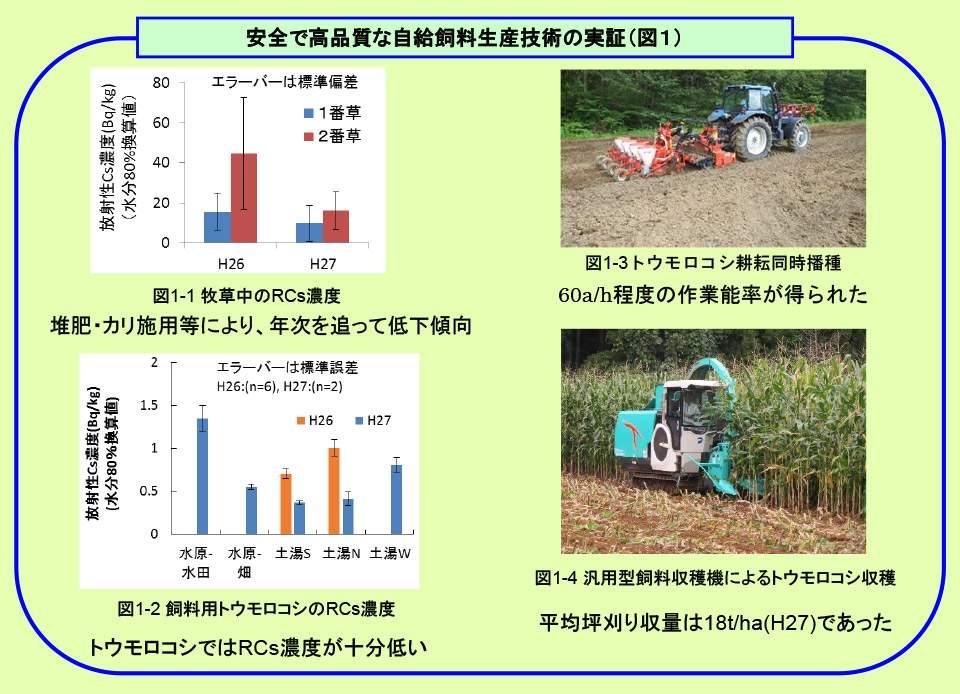 - 牧草のRCs濃度は年次を追って低減しているが、引き続き確認していく必要がある。飼料用トウモロコシでは、RCs濃度、発酵品質共に問題なく、搾乳牛に給与可能な自給飼料を生産できた(図1)。