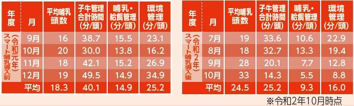 - スマート哺育技術により、哺乳・給餌作業や環境整備に要する1頭当たりの作業時間が、技術導入後は25. 2分と、導入前の40.1分から37.4%の削減となった。