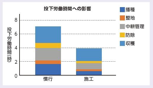 - 播種作業時における整地作業を無人化することで、整地作業全139人時に対し約1/3の57人時まで削減できると試算された。