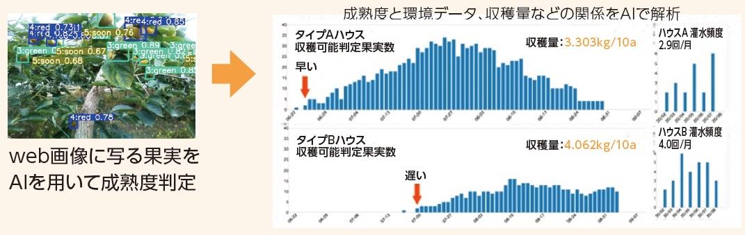 AIにより自動判定された成熟度と環境・収穫量