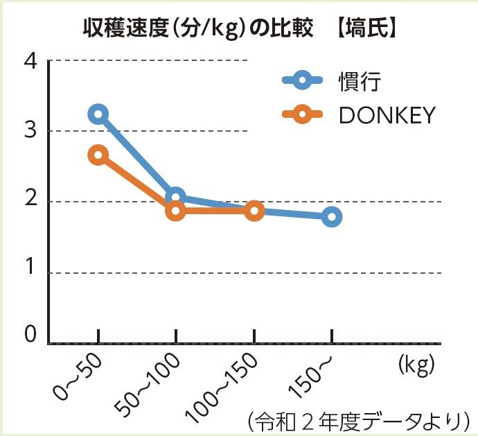 - 慣行、DONKEYともに1畝ごとにコンテナを入れ替えて収穫。