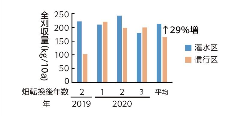 - 潅水支援システムの水ストレスアラートを参考に潅水することにより大豆の収量が29%増加した。