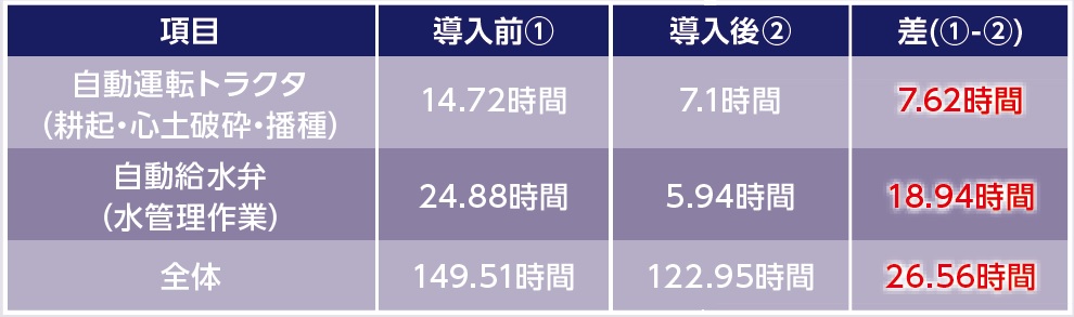 - ロボットトラクタ、自動給水弁の導入により労働時間が18%削減。