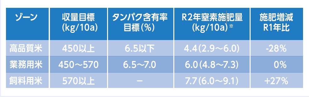 - タンパク含有率:高品質米:平均6.2%(目標6.5%以下)。