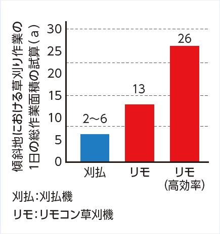 ※作業効率は、刈払機は1~3a/h(文献)、リモコン草刈機は4.3~8. 6a/h(令和2年度調査、通常~高効率作業)で試算